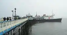 In 1969, the landing stage was totally rebuilt in concrete and steel, which enabled its use by the largest Isle of Man Steamers then in use. By 1972, the pier was well known for day trips by ferry to the Isle of Man, although at this time could itself boast pavilion concerts, vintage car rides and various amusements.[15] The wooden decking has been extensively renewed in recent years, and the superstructure is maintained systematically.[2]