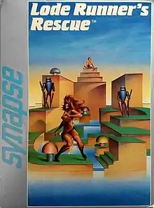 Lode Runner's Rescue is a 1985 action game developed by Joshua Scholar for the Commodore 64 and Atari 8-bit family as a follow-up to Doug Smiths's Lode Runner.[3] Lode Runner was published by Broderbund, but the sequel was published under the Synapse Software name, a company acquired by Broderbund in 1984. Lode Runner's Rescue uses isometric projection to give a 3D feel.[4]