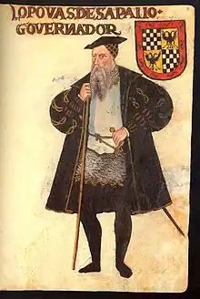 ![]() Portrait of Lopo Vaz de Sampaio in Livro de Lisuarte de Abreu, c. 1560. | |