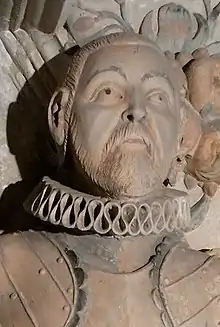 Detail of Seymour's effigy on the monument in Berry Pomeroy Church
