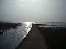 Lough Gill is considered a natural lagoon, draining into Tralee Bay. It is fed by the Killiney River and another unnamed stream. The lake is shallow, with depths of less than 0.5 m (1 ft 8 in).[3]