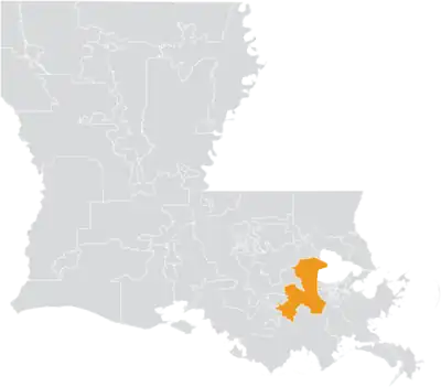 The district overlaps with Louisiana's 1st, 2nd, and 6th congressional districts, and with the 54th, 55th, 56th, 57th, and 92nd districts of the Louisiana House of Representatives.[4]