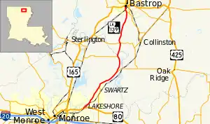 North end US 165 / US 425 / LA 2 / LA 593 in Bastrop
