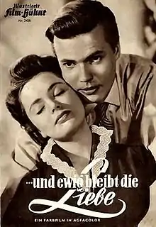 Love is Forever (German: ...und ewig bleibt die Liebe) is a 1954 West German drama film directed by Wolfgang Liebeneiner and starring Karlheinz Böhm, Ulla Jacobsson and Ingrid Andree.[1] The film is based on the play Fires of St. John by Hermann Sudermann.