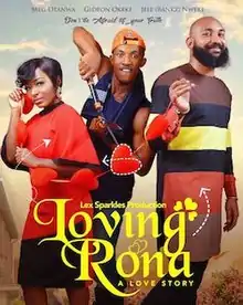 Loving Rona, is a 2021 Nigerian romantic drama film directed by Luke Aire Oyovbaire and co-produced by Alex Odinigwe and Chidi Umeoji.[1] The film stars Meg Otanwa and Gideon Okeke in the lead roles whereas Fiona Garba, Jeff (Bankz) Nweke and Erica Bale Opia made supportive roles.[2] The film deals with a love affair between a young wealthy businesswoman Rona and her Garden boy Benny after they planned to stop the romance between Alex, Rona's ex fiancée and Jackie, his supposed masseur.[3][4]