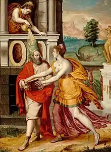 - Socrates and Xanthippe oil on oak wood, 77.5x60 cm, The Royal Castle in Warsaw[6]