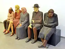 Since 1980 she has returned to classic materials: clay, stone and wood. She takes her subjects from life around her, the city with its variety of human characters and their fates, the social differences to the fringes of society. A series of heads/busts of different characters, mainly in terracotta, were the Turkish Woman 1983, Homeless 1990, Cunning Stockbroker and Girl at the Exhibition 1996 and others. Her sculptures based on reality were transformed portraits of real people from everyday life, interpreted by the artist into her own sculptural language: Beggar Woman 1997, Underground 2001-2 and others. The sculpture Father`s Hat 1995 is a self-portrait.