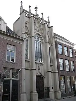The French Calvinist community of 's-Hertogenbosch had come into the city after the Siege of 's-Hertogenbosch. It first used St. Anne's chapel, and after that was broken down in 1819, it moved to St. Gertrude's.[1]