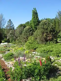 The arboretum was founded in 1953 and rapidly grew during the 1950s. By 1962, 2273 plants belonging to 327 taxa had been planted in the arboretum. Subsequently, the arboretum expanded less swiftly because plants from most common species had already been planted.[1] Today the arboretum contains a large number of species, sources give vague numbers of "about 500"[2] or "more than 800".[3] The plants are organised according to their geographical origin; the arboretum has sections for plants from Europe, Siberia, Central Asia, the Far East and North America. The Central Asian and Siberian sections have the fewest taxa represented, while at least earlier the North American and the Far Eastern divisions were the richest. The whole arboretum is protected as a wildlife reserve by Estonian law.[1]