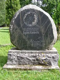 Lydia Jannsen was born in Vändra (Fennern), Estonia. The family moved to the nearby county town of Pärnu (Pernau) in 1850 where, in 1857, her father started the first local Estonian language newspaper and where Lydia attended the German-language grammar school. The Jannsens moved to the university town of Tartu (Dorpat) in 1864. Any kind of expression of nationalism, including publication in indigenous languages, was a sensitive subject in the Russian Empire, however the rule of czar Alexander II (1855–1881) was relatively liberal and Jannsen managed to persuade the imperial censorship to allow him to publish the first Estonian-language newspaper with nationwide distribution in 1864.[2] Both the Pärnu local and the national newspaper were called Postimees (The Courier). Lydia wrote for her father on both papers besides publishing her own work. In 1873, she married Eduard Michelson, an army physician, and moved to Kronstadt (Russian naval base on an island near St. Petersburg). In 1876–78 the Michelsons visited Breslau, Strasbourg and Vienna. Koidula lived in Kronstadt for 13 years and albeit during that time she would spend the summers in Estonia, she reportedly never stopped feeling inconsolably homesick. Lydia Koidula was the mother of three children. She died from breast cancer on 11 August 1886. Her last poem was Enne surma — Eestimaale! (Before death, to Estonia!).