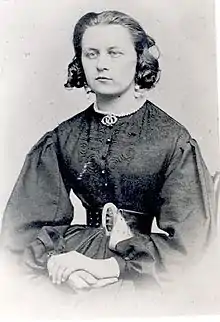 Koidula is also considered the "founder of Estonian theatre" through her drama activities at the Vanemuine Society (Estonian: Vanemuise Selts), a society started by the Jannsens in Tartu in 1865 to promote Estonian culture.[4] Lydia was the first to write original plays in Estonian and to address the practicalities of stage direction and production. Despite some Estonian interludes at the German theatre in Tallinn, in the early 19th century, there had been no appreciation of theatre as a medium and few writers considered drama of any consequence, though Kreutzwald had translated two verse tragedies. In the late 1860s, both Estonians and Finns started to develop performances in their native tongues and Koidula, following suit, wrote and directed the comedy, Saaremaa Onupoeg (The Cousin from Saaremaa) in 1870 for the Vanemuine Society. It was based on Theodor Körner's (1791–1813) farce Der Vetter aus Bremen, (The Cousin from Bremen) adapted to an Estonian situation.[5][6] The characterisation was rudimentary and the plot was simple but it was popular and Koidula went on to write and direct Maret ja Miina, (aka Kosjakased; The Betrothal Birches, 1870) and her own creation, the first ever completely Estonian play, Säärane mulk (What a Bumpkin!). Koidula's attitude to the theatre was influenced by the philosopher, dramatist, and critic Gotthold Ephraim Lessing (1729–1781), the author of Erziehung des Menschengeschlechts (The Education of the Human Race; 1780). Her plays were didactic and a vehicle for popular education. Koidula's theatrical resources were few and raw – untrained, amateur actors and women played by men – but the qualities that impressed her contemporaries were a gallery of believable characters and cognizance of contemporary situations.
