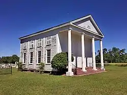 Lynchburg Presbyterian Church is a historic Presbyterian church located at South Lynchburg, Lee County, South Carolina. It was built in 1855, and is a two-story temple-form Greek Revival style building with an engaged tetrastyle portico featuring four massive stuccoed solid brick columns. The interior is primarily a single room with plaster walls and 21 foot high ceiling, undecorated except for a large circular plaster medallion in the center.[2][3]