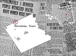 Tensions in the region were very high as a number of Black men had been lynched in the area. 8 miles (13 km) away from Streetman on May 6, 1922, three Black men were Lynched in Kirvin, Texas for allegedly murdering 17-year-old Eula Ausley. 60 miles (97 km) away from Streetman, in Waco, Texas, Jesse Thomas was Lynched on May 26, 1922. All were killed with little to no evidence.