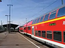 | RE 7 | (Karlsruhe –) Offenburg – Lahr (Schwarzw) – Emmendingen – Freiburg – Schallstadt – Bad Krozingen – Müllheim – Basel Bad (– Basel SBB) | Hourly | 3 (towards Freiburg) 4 (towards Basel) |