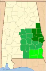 Northern Division comprises the following counties: Autauga, Barbour, Bullock, Butler, Chilton, Coosa, Covington, Crenshaw, Elmore, Lowndes, Montgomery, and Pike.