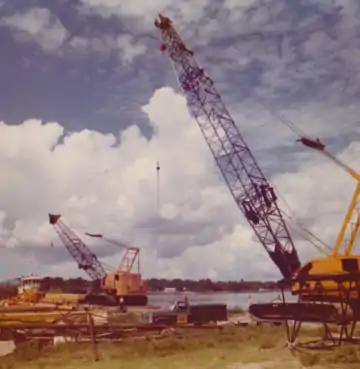 In 1983 the Moody Truck Center was formed with the REO Truck line in order to serve the trucking industry. Max Moody Jr.'s son Mike Moody became the President of the Moody Truck Center until its demise in 1996.[10] By the 1980s, M. D. Moody & Sons, Inc. had acquired over 150 cranes of all types such as crawler cranes and rough terrain cranes. The most notable crane equipment sold by the firm was American Hoist & Derrick, Badger, CDS, Furukawa, Trojan, Terex, Koehring, and Kato. In the mid-1980s M. D. Moody & Sons, Inc. and its subsidiaries were employing over 200 people. Operations of M. D. Moody branched out internationally to Cuba, South Africa, Saudi Arabia and Japan.[11] M. D. Moody also provided equipment for construction of Epcot in 1981 and the Walt Disney World Swan in 1990.
