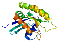 - ↑ Ye M, Shima F, Muraoka S, Liao J, Okamoto H, Yamamoto M, Tamura A, Yagi N, Ueki T, Kataoka T (September 2005). "Crystal structure of M-Ras reveals a GTP-bound "off" state conformation of Ras family small GTPases". The Journal of Biological Chemistry. 280 (35): 31267–75. doi:10.1074/jbc.M505503200. PMID 15994326.