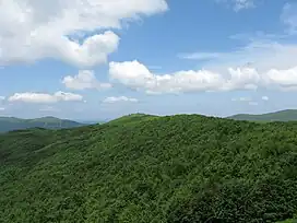 To the north-east, a ridge runs from it, through Wyżniańska Przełęcz, running towards Połonina Caryńska. It lies 15 minutes by mountain trail from Wielka Rawka, separated from it by a high pass (1254 m), where the highest forest in the Polish Bieszczady grows. Its top is covered by a small pasture, which is an excellent vantage point for the most famous Bieszczady massifs: the Tarnica group, Połonina Wetlińska and Caryńska.[2] Conquering Mała Rawka involves overcoming the elevation of about 300 meters from its foot.
