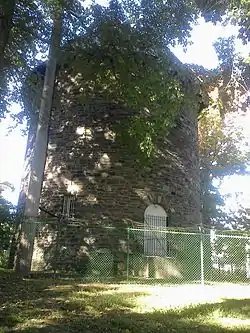 Originally a component of Clarence Mackay's Harbor Hill Estate, the water tower and tank are concealed inside a tall structure designed by Stanford White that is constructed of stone, laid in random ashlar, and the roof is spanned by a Guastavino tile dome.[2]