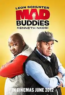 Mad Buddies is a 2012 South African comedy film directed by Gray Hofmeyr, co-written by Gray Hofmeyr and Leon Schuster, and starring Leon Schuster, Kenneth Nkosi, Tanit Phoenix and Alfred Ntombela. Walt Disney Studios Motion Pictures acquired the film's distribution rights and released the film through the Touchstone Pictures banner. This production is an unofficial remake of the Jamie Uys films Fifty/Vyftig, Hans en die Rooinek and All the Way to Paris: films which, like this one, depict two adversaries having to assist each other to get out of awkward situations.