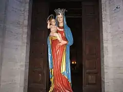 Religious rites are held on 27 April, officially recognized as the patronal holy day of Avezzano. Every year the statue of the Virgin is taken in procession going down the Via Crucis of Mount Salviano, and then reaching the Cathedral of St. Bartholomew along two urban routes which alternate from year to year, according to the confraternity organizing the rite.[25][26]