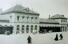 Image of the Campo Sepulcro station (Zaragoza-Portillo station), the MZA station in the Aragonese capital, at the beginning of the 20th century.
