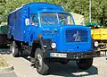 Magirus Mercur with a NATO shelter. This configuration and color was typically used by the "Technische Hilfswerk", part of the German disaster response system