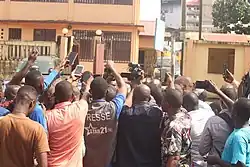 - Scene of joy upon the announcement of the liberation of prisoners in front of the Maison centrale