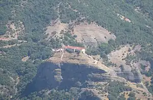 The Makelaria Monastery (Greek: Ιερά Μονή Κοιμήσεως Θεοτόκου Μακελαριάς) is a 6th-century Eastern Orthodox monastery located in the Peloponnese, Greece. It lies on a big rock near the villages of Lapanagoi, at a distance of 30 km from the town of Kalavryta. The monastery, one of the oldest in Greece, was founded in 532 AD and is dedicated to the Dormition of the Theotokos