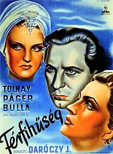 Male Fidelity (Hungarian: Férfihüség) is a 1942 Hungarian drama film directed by József Daróczy and starring Antal Páger, Klári Tolnay and Elma Bulla.[1] [2] It was shot at the Hunnia Studios in Budapest. The film's sets were designed by the art director László Dudás.