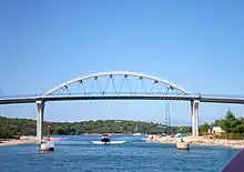 Mali Ždrelac is a small strait in the Adriatic Sea located between the Croatian islands of Ugljan and Pašman. State road D110 passes over the strait via the Ždrelac Bridge which spans the entire strait. There is also a village called Ždrelac on the island of Pašman overlooking the strait.