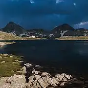 Lakes twelve to twenty-three are located along the southern slope of Belemeto at the foothills of the summit of Kamenitsa. The largest are lakes 12, 13, 15, 17 and 22. They are heterogeneous in character. Some have a non-permanent water flow, most are marshy, with sloping grass banks. An exception is lake 22 on the northern slopes of Kamenitsa at an altitude of 2375 m, which is the second largest in the lake group with an area of 13,950 m2,[5] maximum depth of 2.3 m and a volume of 11,500 m3. It has rocky shores and rocky bottom.[2]