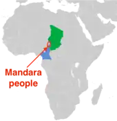 The Mandara people, also known as Wandala or Mandwara, are a Central African traditionalist ethnic group found in north Cameroon northeastern Nigeria, and southeastern Chad.[2] They speak the Wandala language, which belongs to the Chadic branch of Afro-Asiatic languages found in northeastern Africa.[1]