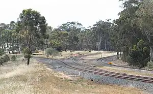 Mangalore is a closed station located in the township of Mangalore, at the junction of the North East and Goulburn Valley railway lines in Victoria, Australia. The station was one of 35 closed to passenger traffic on 4 October 1981 as part of the New Deal for Country Passengers.[1] The former station building was moved from the site, and currently sits in a yard on the way into nearby Avenel.