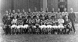 Early games were played against neighbouring towns on a round robin basis with the teams playing for trophies donated by prominent businessmen. The original shirt worn by Mansfield was white with red stripes. In 1900 these local clubs formed an Association, adopted a constitution and began a formal competition for points culminating in a final series. Mansfield played many clubs in this era in various leagues and associations. Jamieson, Bonnie Doon, Merton, Maindample, Delatite, Mt Battery, Swanpool, Tolmie, Yarck, among others.