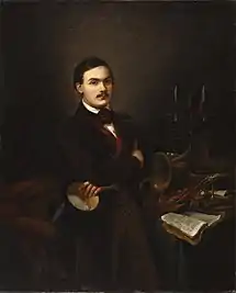 Although he is most familiar as a painter of genre scenes, he also produced many portraits; notably those for the French Ducal family of Montpensier, for whom he worked in 1877, and the actors, Teodora Lamadrid (dressed in her role of Adriana Lecouvreur) and Julián Romea (dressed as Sullivan). The latter works may be seen at the Museo del Romanticismo in Madrid. Other important examples of his work may be found at the Carmen Thyssen Museum in Málaga.[1][2]