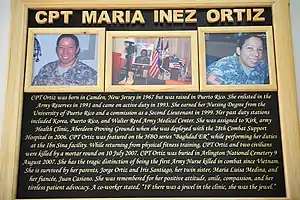 Captain María Inés Ortiz (April 24, 1967 – July 10, 2007) was the first American nurse to die in combat during Operation Iraqi Freedom and the first U.S. Army nurse to die in combat since the Vietnam War.[1] The United States Army named the Forward Operating Base Prosperity clinic after her.[2]