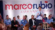 The 2016 presidential campaign of Marco Rubio, who is currently the senior United States senator from Florida, was formally announced on April 13, 2015, at an event at the Freedom Tower in Downtown Miami.[3] Early polling showed Rubio, who was considered a potential candidate for Vice President by Republican presidential nominee Mitt Romney in 2012, as a frontrunner candidate for the Republican nomination for president of the United States in 2016 since at least the end of the 2012 election.[4] Rubio was the second Cuban American to run for president of the United States, with Republican Ted Cruz announcing his campaign three weeks earlier. He suspended his campaign on March 15, 2016, after finishing second in Florida's primary.[5]