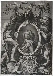 We have only some fragmented data about Vulson de la Colombière's life: even major 19th-century biographies deliver only incomplete information. He was born in a Protestant noble family at the end of the 16th century in Dauphiné. He was a son of François, a lawyer, and Michelle Odde de Bonniot.[2] In his youth, he fought for Henry IV. According to one story, in 1618 he went to Paris to request a pardon, after he killed his treacherous wife and her lover.[3]
