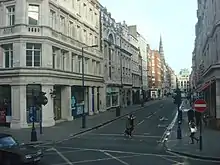 Margaret Street is a street that straddles the Marylebone and Fitzrovia areas of the City of Westminster in the West End of London, running from Cavendish Square to Wells Street via Regent Street (A4201), Great Portland Street, and Great Titchfield Street.[1][2] It is north of and parallel to the major shopping street, Oxford Street. John Prince's Street runs between Margaret Street and Oxford Street.