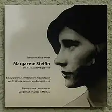 Margarete Emilie Charlotte Steffin (21 March 1908 – 4 June 1941) was a German actress and writer, one of Bertold Brecht's closest collaborators, as well as a prolific translator from Russian and Scandinavian languages.