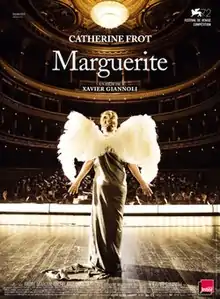 Marguerite is a 2015 French-language comedy-drama film directed by Xavier Giannoli and written by Giannoli and Marcia Romano, loosely inspired by the life of Florence Foster Jenkins. Set in the Golden Twenties, the film stars Catherine Frot as a wealthy woman who is an enthusiastic amateur singer and believes, wrongly, that she has a beautiful voice. The film is an international co-production among France, the Czech Republic, and Belgium.[4] Marguerite received eleven nominations at the 41st César Awards, winning for Best Actress, Best Costume Design, Best Sound, and Best Production Design.[5]