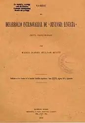 Later in 1916, Hylton Scott became the first women in Argentina to obtain a doctorate in Zoology. Her doctoral thesis was dedicated to the embryology of the viviparous freshwater fish, Fitzroyia lineata (now under Jenynsia, Characiformes: Jenynsüdae).[5]