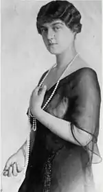 Grand Duchess Maria Pavlovna was born 18 April [O.S. 6 April] 1890 in Saint Petersburg. She was the first child and only daughter of Grand Duke Paul Alexandrovich of Russia and his first wife, Grand Duchess Alexandra Georgievna of Russia, born Princess Alexandra of Greece and Denmark.[1] The baby was named after her late paternal grandmother, the Empress Maria Alexandrovna, and her paternal aunt, maternal grandaunt, and godmother, the Empress Maria Feodorovna.[2] Maria was not yet two years old when her mother died from complications after giving birth to Maria's younger brother, Grand Duke Dmitri Pavlovich of Russia in 1891.[3] Grand Duke Paul was so distraught by the unexpected death of his young wife that he neglected his two small children, who were left in the care of his elder brother, Grand Duke Sergei Alexandrovich, who had no children of his own. Once he recovered emotionally, Grand Duke Paul took the two children away with him. A commander of the Imperial horse Guards, Grand Duke Paul loved his children, but as was customary at the time, he refrained from showing them spontaneous affection.[4] Maria and her brother were raised by governesses and tutors, but they adored their father who visited them twice a day.[4] The children spent Christmases and later some summer holidays with Grand Duke Sergei and his wife Grand Duchess Elisabeth Feodorovna.[5] The couple set aside a playroom and bedrooms for the youngsters at their country home Ilinskoe.[6]