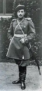 Grand Duke Sergei, who served as Governor General of Moscow, was a polarizing figure. Targeted by the SR Combat Organization, he was assassinated by a terrorist bomb at the Kremlin in February 1905.[10] The bomber had refrained from an earlier attack because he saw that Grand Duchess Elisabeth, 15-year-old Maria, and her younger brother Dmitri were in the carriage, and he did not want to kill women and children.[13] After the assassination of their uncle, both children were emotionally distraught, particularly Dmitri. Grand Duke Paul claimed the custody of his children, but the tsar made Elisabeth their guardian.[14] Grand Duke Paul was allowed to visit them, but not to return to Russia permanently. After her husband's assassination, Grand Duchess Elisabeth Feodorovna regretted treating the children poorly, and she became closer to them.