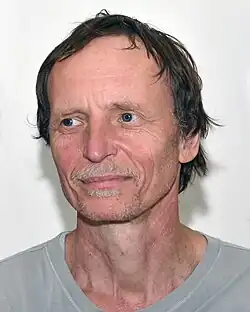 Marian Volráb comes from the family of painter and glass artist Rudolf Volráb (1933–1969) and glass and fashion designer Libuše Šilhavá. He spent his youth in the countryside in his mother's birthplace in Volenice. His father died in 1969, but Marian Volráb was strongly influenced by his work.[1] He completed one year of glass apprenticeship in Poděbrady and then, between 1978 and 1982, studied at the Secondary School of Glass Arts in Kamenický Šenov, where the glass engraver and author of monumental charcoal drawings, Prof. Josef Kochrda, worked.[2] He continued his studies at the Academy of Arts, Architecture and Design in Prague (1982–1988) in the glass studio of prof. Stanislav Libenský and Jaroslav Svoboda.[3]