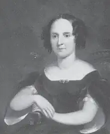 In 1837, 18-year old Amelia's first marriage was out of pity for a gravely-ill Thomas Harned on his deathbed, who died the next day.[2] She met an older South Carolina businessman Peter Burton, who was visiting Philadelphia, and married him in 1840. They returned to Columbia, where Burton died of a seizure sometime in 1846, leaving Amelia several months pregnant. Mary Amelia Peter Burton was probably born in December 1846.[3][4] The 1850 census gave her age as three and the 1860 census gave thirteen.[5][6][lower-alpha 1]