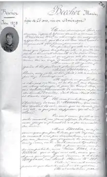 Marie had been caring for her younger half-sister Ethland, but in 1874 Ethland joined her father Jacob Feaster and two older siblings in pioneer LaGrange, Florida.[54] Ethland maintained correspondence with Marie.[lower-alpha 5]