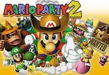 Mario Party 2[lower-alpha 1] is a 1999 party video game developed by Hudson Soft and published by Nintendo for the Nintendo 64. The second game in the Mario Party series, it was released in Japan in December 1999 and worldwide in 2000.[1] The game received mostly positive reviews, who praised the improvements they made to the original, the multiplayer and minigames, but criticized the lack of originality, while graphics received a better but otherwise mixed response.