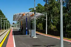As part of the electrification of the line, Marion station was rebuilt in 2013, with a new waiting shelter installed, an underpass built and the bridge demolished.[7] The underpass was built at the northern end to replace the overpass and pedestrian crossing. The project was completed on 30 November 2013.[7][8][9] Local residents had expressed their preference that the overpass be replaced instead, based largely on undesirable behaviour that occurs in an underpass because of the lack of visibility.[10] Although it was meant to address flooding issues that had plagued the area, the underpass flooded twice in 2014.[11]